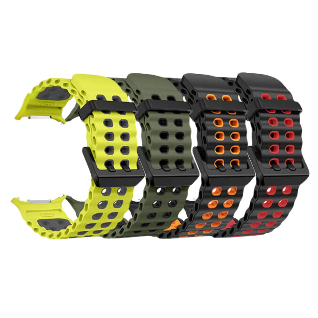 This two-tone marine silicone strap is perfect for Samsung Galaxy Watch Ultra users who demand style and performance. It enhances your watch's look with a sporty edge while delivering durability and comfort for all your adventures. The no-gap design ensures your Galaxy Watch fits perfectly and looks sleek at all times.